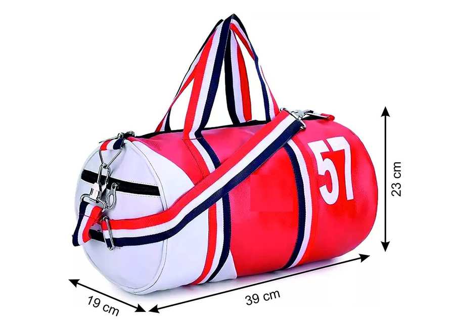 GROUPERS Combo Set of Duffle PU Leather Bag with Gloves/Gym Bags/Adjustable Shoulder Bag for Men/Fitness Bag/Carry Bags/Sports & Travel Bag/Sports Kit/Duffle Bags Travel (Red White)