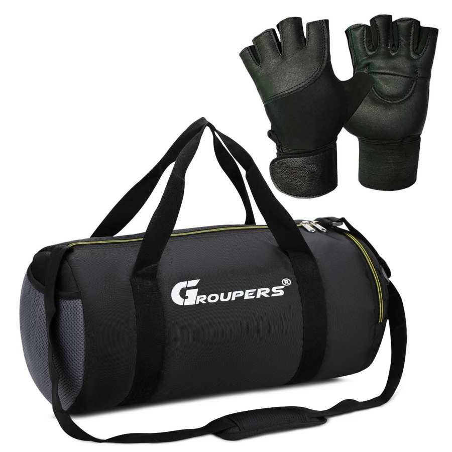 GROUPERS Duffle Polyester Bag l Gym Gloves (Black)